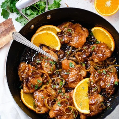 This dish shines best when served with fluffy white rice or quinoa to soak up the delicious sauce. Don’t forget to add a colorful mix of steamed vegetables or a fresh salad on the side. Presenting the chicken garnished with cilantro leaves and sliced oranges not only enhances the dish’s visual appeal but also adds a fresh aroma that entices everyone at the table.