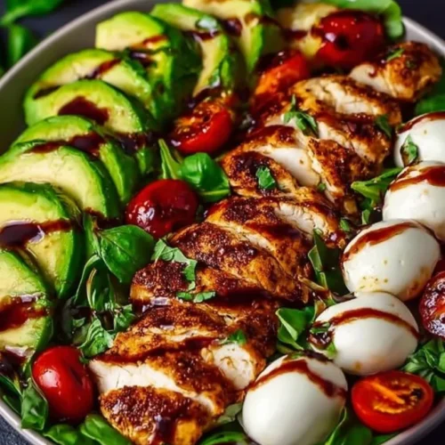 This recipe merges convenience and deliciousness perfectly, allowing you to nourish your family with a meal rich in healthy fats, lean protein, and vibrant veggies. The creamy mozzarella pairs seamlessly with tender chicken, all balanced by the zing of balsamic vinaigrette. And the best part? It’s ready in no time! You can even prepare it in advance for an effortless grab-and-go lunch or dinner. Healing and delightful, it satisfies cravings without going off your nutrition track, perfect for anyone aiming for a heart-healthy and calorie-conscious lifestyle.