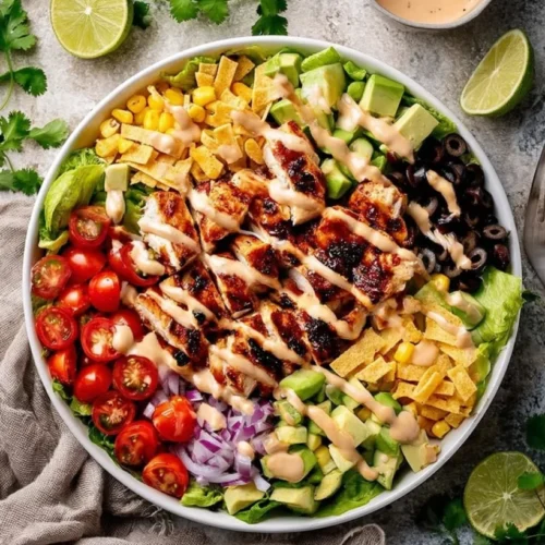 Why should BBQ Chicken Salad take center stage on your dining table? First of all, it combines the irresistible flavors of grilled chicken and tangy BBQ sauce, bringing that summer cookout vibe right to your dinner plate. The variety of textures—from the crunchy greens to the juicy cherry tomatoes—makes each bite exciting, whether it’s lunch at home or a packed meal on the go. Plus, this salad is designed with busy families in mind. Not only can it be made in under 30 minutes, but it’s also packed with wholesome ingredients that keep you full and satisfied.