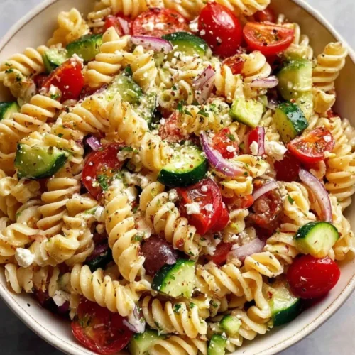 This best pasta salad is not just a dish; it’s your go-to solution for healthy, delicious meals that fit perfectly into a busy lifestyle. Packed with vibrant veggies and creamy feta, this meal is both enjoyable and nourishing. Give it a try, and don’t forget to comment and share your own variations or related recipes you love!
