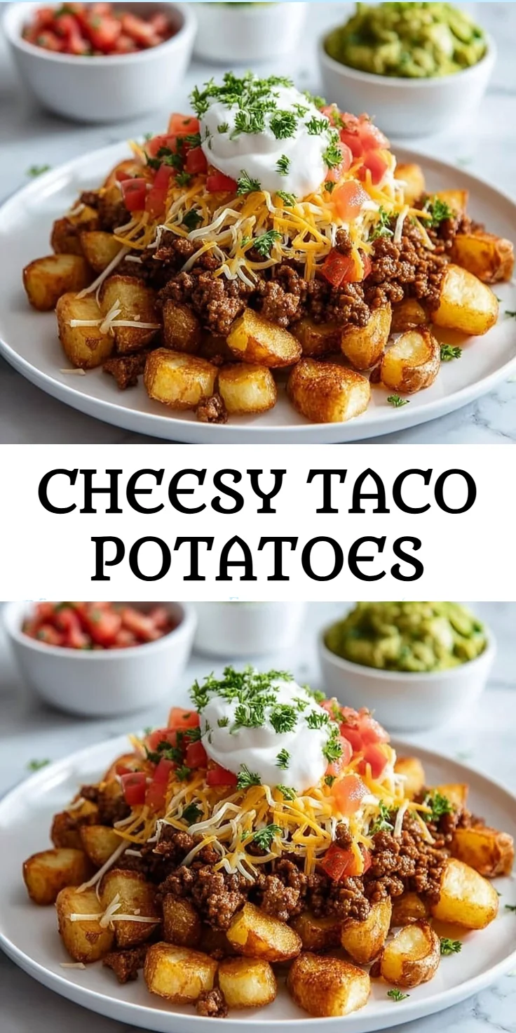 What toppings do you recommend for Cheesy Taco Potatoes? Fresh pico de gallo, creamy guacamole, or a drizzle of sour cream work wonderfully!