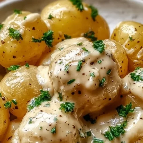 This dish stands out as one that meets you where you are—whether you’re prepping for a busy week ahead or just trying to put a filling, heart-healthy dinner on the table. The velvety sauce, made without excess fat or calories, adds a sophisticated touch to simple baby potatoes. It’s a delightful family meal that will keep everyone coming back for more. Trust me, with their creamy texture and aromatic garlic, these potatoes will become a staple in your healthy lifestyle.