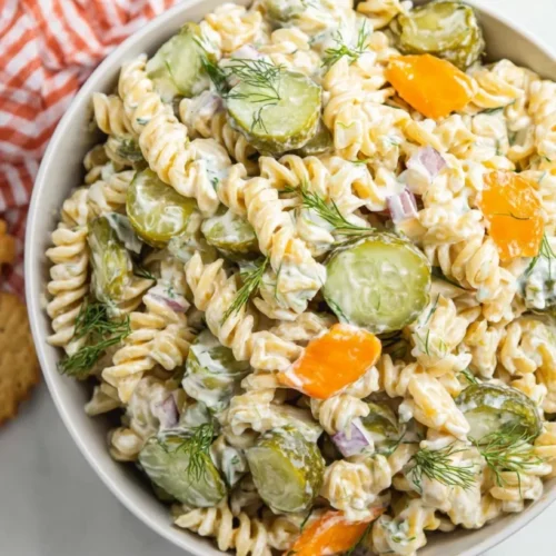 This Dill Pickle Pasta Salad is a must-try! It combines creamy textures with crunchy dill pickles to create a dish that’s both satisfying and refreshing. It’s an easy, hearty option for any meal.