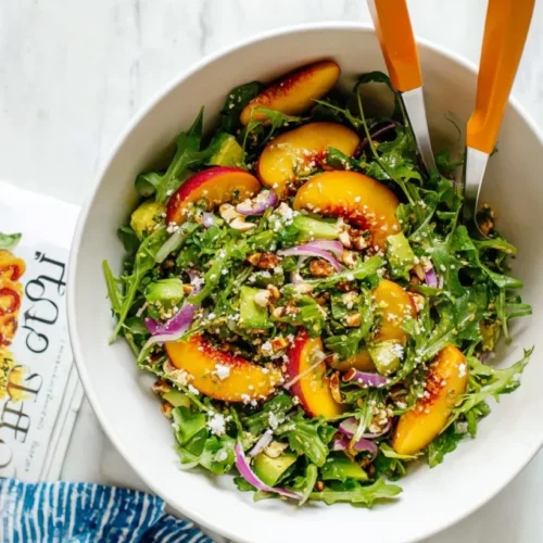This Peach and Avocado Green Salad is not only easy to make but also a fantastic option for those who are watching their calorie intake or following a macro-friendly diet. The addition of baby arugula adds a peppery kick while supporting your nutrition goals. Ideal for busy families, whether you’re meal planning for the week or looking for a quick lunch, this salad aligns perfectly with a healthy lifestyle.