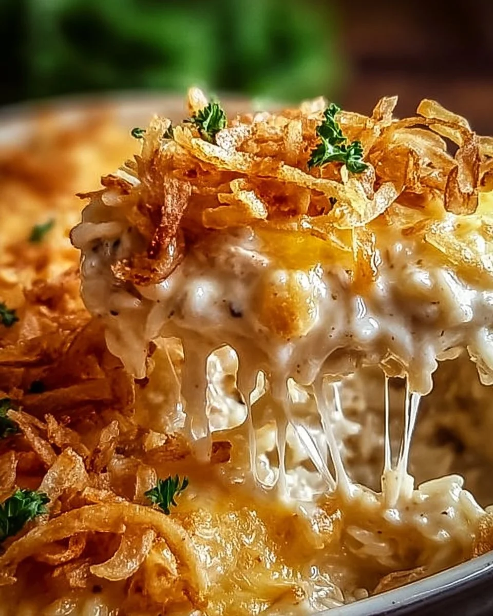 For added richness, consider using a blend of cheeses on top. If you prefer more texture, add crispy onions for a delicious crunch. This dish is perfect for leftovers—just cover and refrigerate.