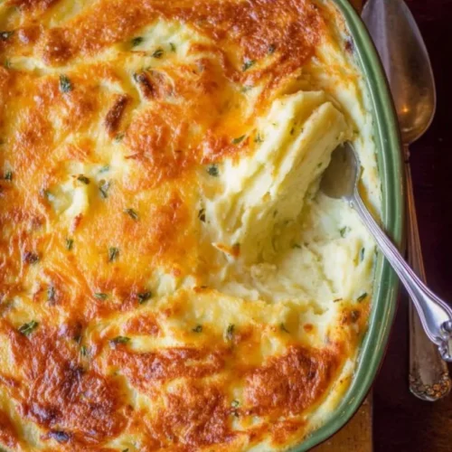 - Transfer the mashed potatoes to a serving dish and smooth the top for presentation.