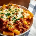 One common mistake is overcooking the pasta. If it becomes too soft, it will turn mushy in the bake. Always cook rigatoni until it’s just al dente. Another mistake is skimping on seasoning. Since pasta absorbs flavor, make sure your sauce is well-flavored before combining it with the pasta. Finally, don’t forget to let it bubble in the oven! A nice golden top that’s slightly crispy adds to the overall comfort of this dish.
