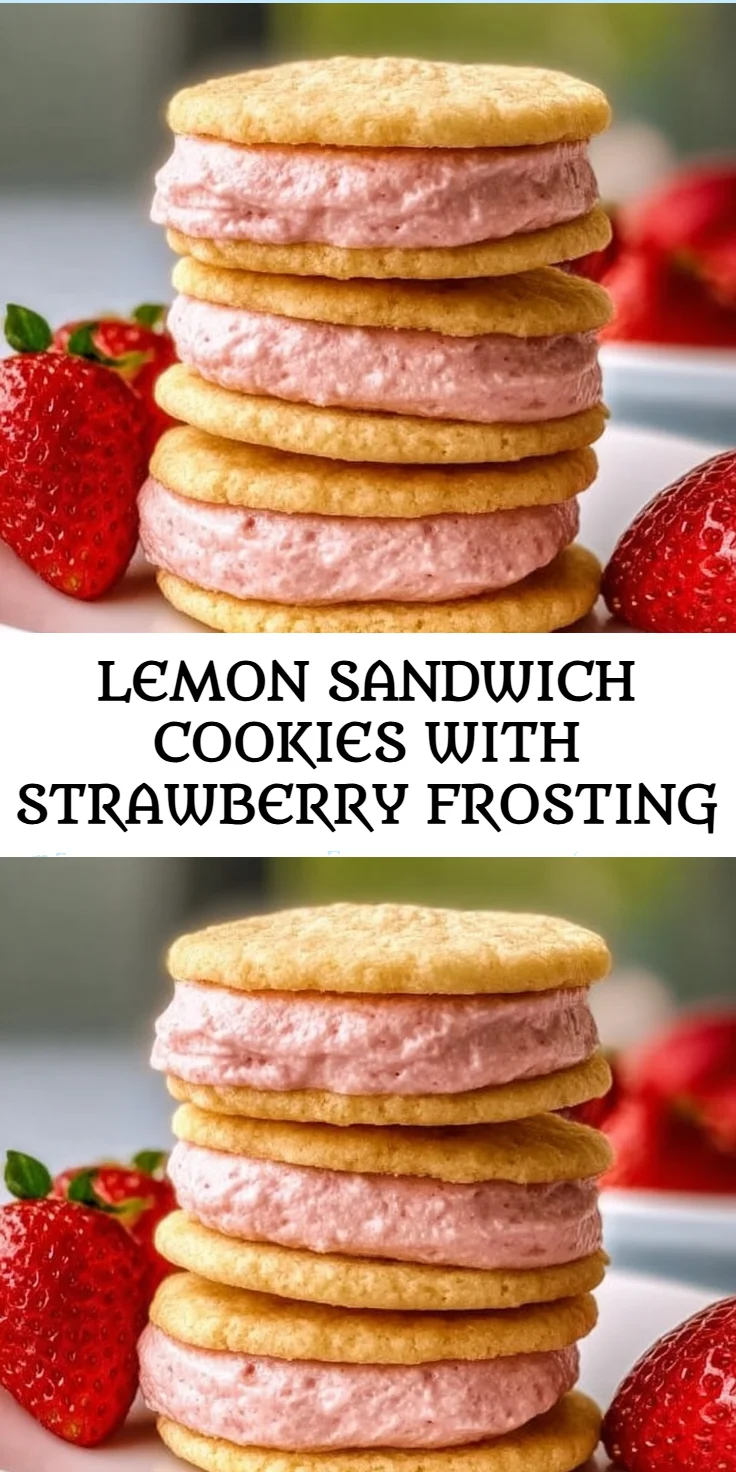 Sweet and tangy Lemon Sandwich Cookies filled with creamy strawberry frosting, perfect for any occasion and meal prep.