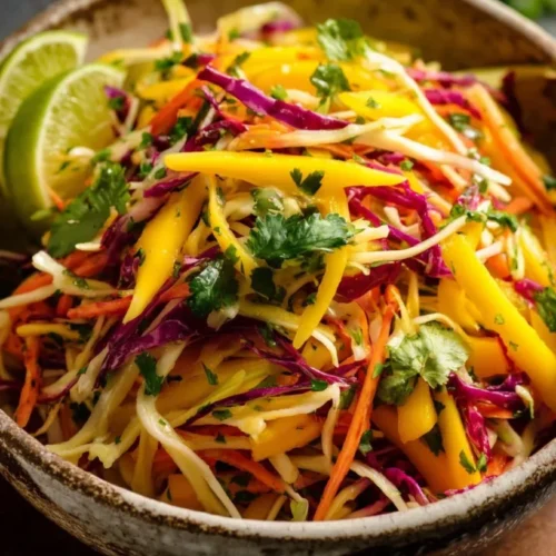Mango Slaw is a delightful dish that combines sweet and tangy flavors with crunchy textures, making it a perfect side for any meal. Its vibrant colors and refreshing taste will brighten up your plate and palate.