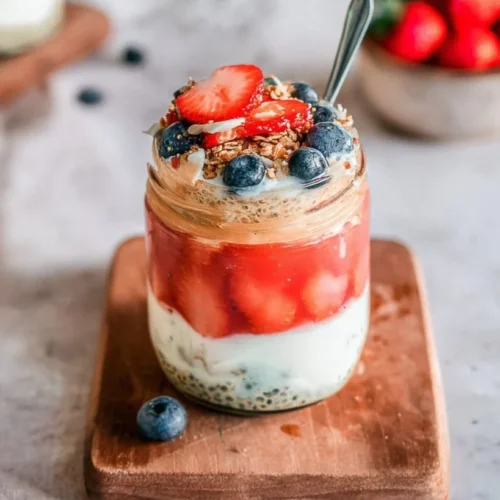 With a hint of sweetness from the maple syrup and an option to add fresh strawberries, this dish is designed to satisfy both your taste buds and your health goals. Naturally gluten-free and loaded with vitamins, this recipe is also protein-packed and calorie-conscious, making it perfect for anyone looking to maintain a healthy lifestyle or work towards specific nutrition objectives. So grab your jars, and let’s get started on a recipe that will transform your mornings!