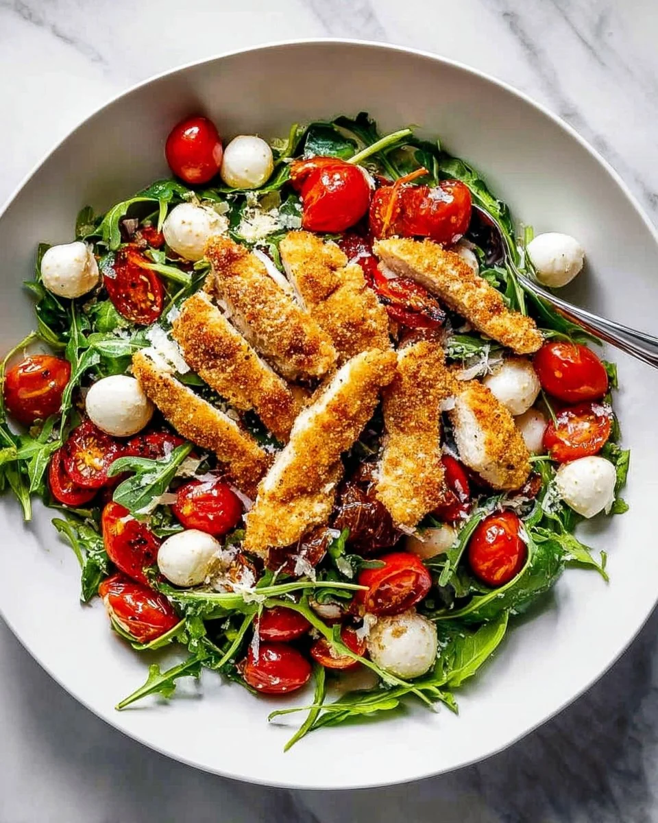 This Parmesan Chicken Salad is not just a meal—it’s a nourishing experience for your taste buds and your body. With protein-packed chicken, creamy goodness without the guilt, and fresh, zesty flavors from seasonal ingredients, it’s a salad that satisfies. The beautiful textures of crisp arugula and tender chicken come together with the savory notes of grated Parmesan and rich mozzarella pearls. Perfect for busy families, this dish caters to your health-conscious goals while remaining utterly delicious. Whether you’re meal prepping for the week or looking for a quick and wholesome dinner, this salad is a winning choice. Imagine diving into a vibrant bowl filled with marinated vegetables, rich cheeses, and perfectly seasoned chicken, all while knowing you’re making a smart choice for your health.