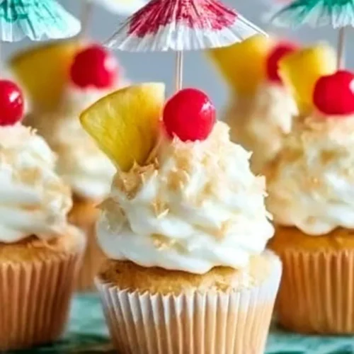 <h1>Pina Colada Cupcakes Recipe</h1> <p>Imagine biting into a soft, fluffy cupcake that tastes just like your favorite beach vacation. These Pina Colada Cupcakes are a delightful treat that brings the tropical vibes right to your home. With a burst of sweet crushed pineapple and a hint of coconut, these cupcakes are moist and tender without needing any heavy cream. Perfect for a summer party or just a cozy night in, they’re a total game changer! Plus, they’re easy to make, which means more time to enjoy your delicious creation. Whether topped with a creamy frosting and dotted with cherries or served plain for a lighter touch, these cupcakes will charm everyone who tries them. Trust me, you’ll love this!</p> <h2>Why You’ll Love Pina Colada Cupcakes (Creamy, Easy, and Cozy)</h2> <p>These cupcakes are not just tantalizing to your taste buds; they're simple yet satisfying. Here’s why you’ll absolutely adore them:</p> <ul> <li>Quick to whip up – perfect for any last-minute gatherings.</li> <li>Soft and fluffy texture that melts in your mouth.</li> <li>Uses pantry-friendly ingredients, so you won’t have to run to the store!</li> <li>Great for meal prep; you can bake them in advance.</li> <li>Adaptable for dietary needs, like gluten-free versions.</li> <li>Endlessly customizable with toppings!</li> </ul> <h2>Ingredients for Pina Colada Cupcakes</h2> <ul> <li><strong>1 1/4 cups (163g) all-purpose flour</strong> – Gives structure, ensuring a fluffy texture.</li> <li><strong>1 teaspoon baking powder</strong> – Helps the cupcakes rise to perfection.</li> <li><strong>1/8 teaspoon baking soda</strong> – Aiding in leavening for that perfect dome.</li> <li><strong>1/4 teaspoon salt</strong> – Enhances all the flavors beautifully.</li> <li><strong>6 tablespoons (84g) unsalted butter, room temperature</strong> – Provides rich flavor and moistness.</li> <li><strong>2 tablespoons (30ml) vegetable oil</strong> – Keeps the cupcakes tender.</li> <li><strong>3/4 cups (155g) sugar</strong> – Sweetness to balance the flavors.</li> <li><strong>2 large eggs</strong> – Binds everything together for a fluffy batter.</li> <li><strong>8 ounces crushed pineapple, with juice</strong> – The star of the show, adding fruity goodness.</li> <li><strong>1/2 teaspoon vanilla extract</strong> – For that warm, aromatic flavor.</li> <li><strong>1 cup (224g) unsalted butter, room temperature</strong> – Used in frosting, ensuring creaminess.</li> <li><strong>4 cups (460g) powdered sugar</strong> – Sweetens the frosting perfectly.</li> <li><strong>1 teaspoon coconut extract</strong> – A splash of tropical coconut flavor.</li> <li><strong>2-3 tablespoons heavy cream or cream of coconut</strong> – Whips up to a velvety frosting.</li> <li><strong>Sliced pineapple, cut into pieces, optional</strong> – For garnish and extra flavor.</li> <li><strong>12–15 maraschino cherries, optional</strong> – A fun and colorful topping.</li> <li><strong>Umbrellas, optional</strong> – To add a festive touch!</li> </ul> <p>Ready to cook? See the recipe card for exact measurements below!</p> <h2>How to Make Pina Colada Cupcakes</h2> <h3>Phase 1 – Prep</h3> <ol> <li>Preheat your oven to 350°F (175°C). Line a cupcake tray with paper liners.</li> <li>In a bowl, whisk together the flour, baking powder, baking soda, and salt.</li> <li>In another bowl, cream the unsalted butter, vegetable oil, and sugar until it’s light and fluffy.</li> </ol> <h3>Phase 2 – Cook/Assemble</h3> <ol> <li>Add eggs one at a time to the creamed mixture, mixing well after each.</li> <li>Stir in the crushed pineapple with juice and vanilla extract.</li> <li>Gradually add the flour mixture and mix until just combined.</li> <li>Pour batter into cupcake liners, filling each about 2/3 full.</li> <li>Bake for 18-20 minutes until a toothpick comes out clean.</li> </ol> <h3>Phase 3 – Serve</h3> <ol> <li>Allow cupcakes to cool completely on a wire rack.</li> <li>While cooling, prepare your frosting with unsalted butter, powdered sugar, coconut extract, and heavy cream.</li> <li>Once cool, frost the cupcakes and top with pineapple pieces and cherries if desired!</li> </ol> <h2>Pro Tips for the Best Results</h2> <ul> <li>Make sure your butter is at room temperature for easy creaming.</li> <li>Use fresh pineapple for a bright and juicy flavor.</li> <li>If you want it extra fluffy, whip your egg whites separately and fold them in at the end.</li> <li>Store cupcakes in an airtight container to keep them moist.</li> <li>You can freeze unfrosted cupcakes for up to 3 months for a sweet treat later!</li> </ul> <h2>Common Mistakes to Avoid</h2> <p>One common mistake is overmixing the batter. This can make the cupcakes dense instead of fluffy. To avoid this, mix until just combined – some lumps are perfectly fine!</p> <p>Another issue is not measuring your flour correctly. Too much flour can lead to dry cupcakes. Make sure to spoon the flour into your measuring cup and level it off, rather than scooping directly from the bag.</p> <p>Lastly, don’t skip cooling the cupcakes before frosting them. If they are too warm, the frosting will melt right off! Let them cool completely to keep that beautiful frosting intact.</p> <h2>Recipe Variations</h2> <ul> <li>Gluten-free: Substitute all-purpose flour with a 1:1 gluten-free blend.</li> <li>Dairy-free: Use dairy-free butter and coconut cream for frosting.</li> <li>Spicy: Add a dash of cinnamon for a warm twist.</li> <li>Fruit-filled: Consider adding fresh berries for an extra fruity burst.</li> </ul> <h2>How to Serve Pina Colada Cupcakes</h2> <ul> <li><strong>Best Pairings:</strong> Serve with a refreshing glass of lemonade or iced tea to complement the tropical flavors.</li> <li><strong>Toppings:</strong> Garnish with shredded coconut, toasted for extra crunch.</li> <li><strong>Garnishes:</strong> Tiny umbrellas or edible flowers add a fun décor touch!</li> </ul> <h2>Make Ahead & Storage</h2> <h3>C