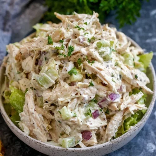 You’ll adore this salad not just for its creamy texture but also for the wealth of flavor in every bite. Using a fully cooked store-bought rotisserie chicken dramatically cuts down on your meal prep time, letting you spend more precious moments with your family. Each scoop of this hearty dish delivers a balance of crunch from the celery and a burst of sweetness from the red onion, all harmonized in a rich, creamy dressing. This is a dish that not only fills bellies but also fosters family connection around the table.