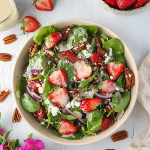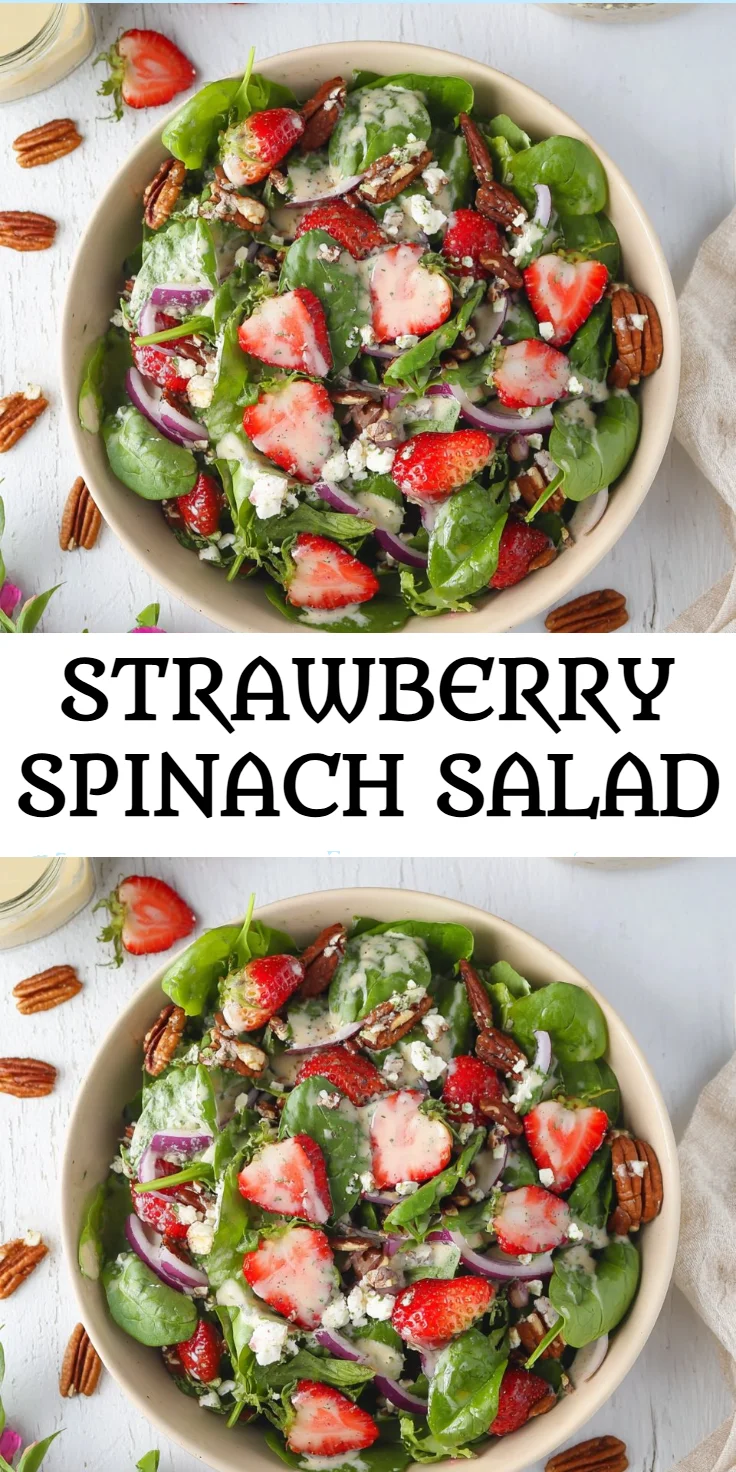 Picture biting into a juicy strawberry, followed by the crunch of pecans, and a hint of red onion, all laced with a creamy poppyseed dressing. The mix is perfect for a quick weeknight dinner or as a nutritious side for family gatherings. No matter the occasion, the Strawberry Spinach Salad is sure to elevate your meal!