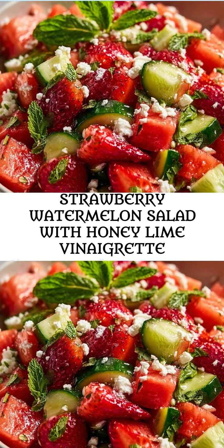 As the seasons change, this salad brings a refreshing taste of summer while being versatile enough for any occasion. It’s a great side or a light meal on its own, allowing you to enjoy a protein-packed dish without feeling weighed down. Picture this: you arrive home after a long day, and with just a few simple steps, you can have a vibrant, delicious bowl of health at your dining table. This isn’t just a recipe; it’s a gateway to a healthier lifestyle. So, grab your ingredients and let’s dive into this deliciously easy Strawberry Watermelon Salad with Honey Lime Vinaigrette!