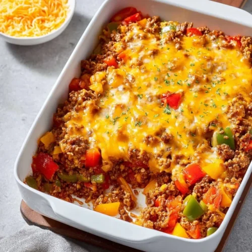 Looking for a cozy dish that’s bursting with flavor and oh-so-satisfying? Look no further than this Stuffed Pepper Casserole! It’s like all the goodness of your favorite stuffed peppers, packed into a warm, creamy casserole that’s sure to become a family favorite. Picture this: tender bell peppers mingling with seasoned ground beef, hearty brown rice, and melty cheddar cheese, all coming together in a one-dish wonder that’s both simple and delicious. Perfect for any season, this meal is not only comforting but also incredibly easy to whip up, making it ideal for busy weeknights or lazy weekends.