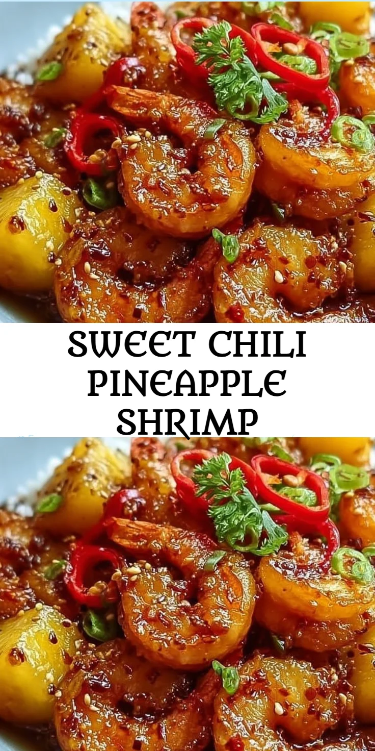 - Pour in the sweet chili sauce mixture and add the diced pineapple. Stir well to coat the shrimp and pineapple in the sauce.