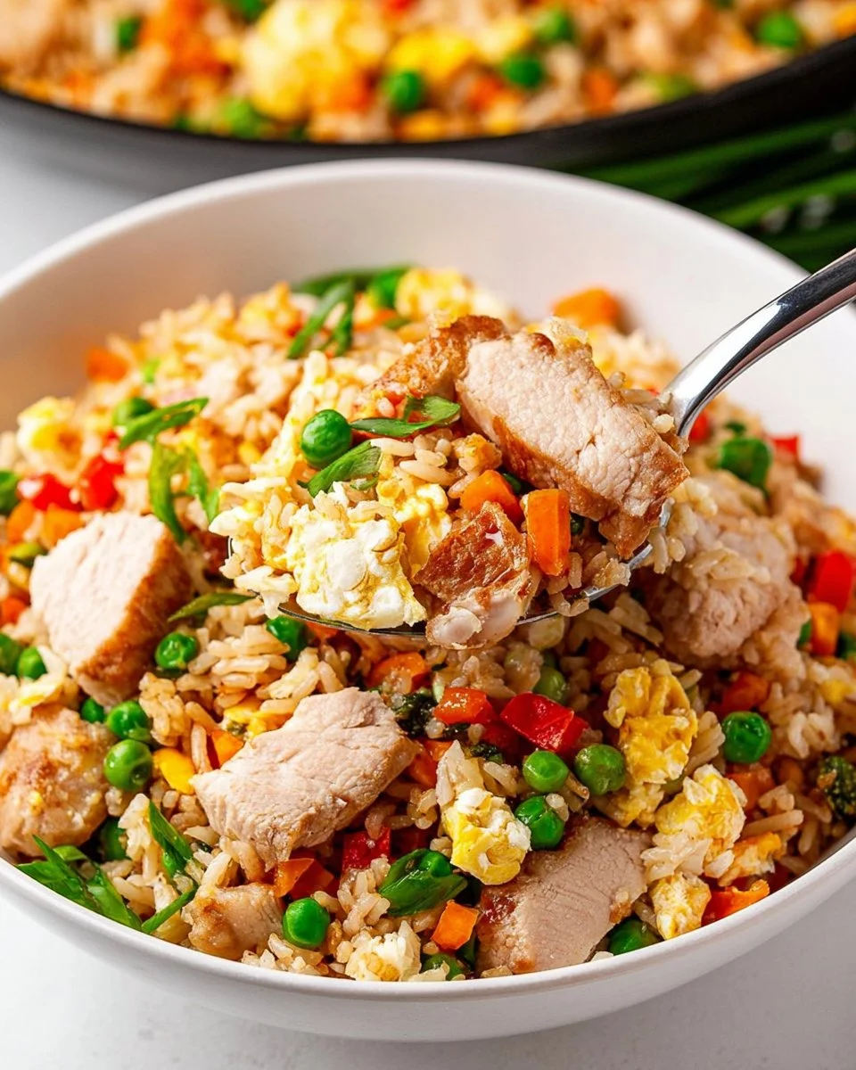 Turkey Fried Rice is not just a meal; it’s a warm hug on a plate, perfect for busy weeknights when you crave flavor but lack time. This dish combines hearty chunks of turkey, vibrant vegetables, and perfectly cooked rice, all delivered with the unmistakable aroma of garlic and sesame. Every bite offers a satisfying crunch followed by a tender chew, making it an instant family favorite. Ideal for meal prep, this healthy dish not only caters to your nutrition goals but is also low in calories and macro-balanced. Feel good knowing you’re treating your loved ones to a dish that’s both comforting and beneficial for their health.