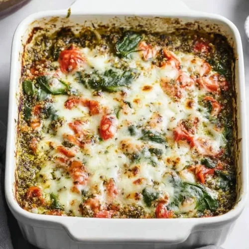 Enjoy the benefits of this casserole that perfectly balances taste and nourishment. It’s a wholesome dish that caters to your daily nutrition needs while pleasing your palate. The creamy texture from the mozzarella cheese combined with the vibrant flavors of pesto creates an inviting meal that feels indulgent yet is packed with vegetables and protein. The quality of the ingredients ensures you’re fueling your body without the guilt.