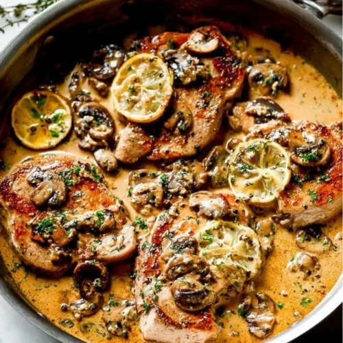 A creamy comfort dish featuring tender chicken breasts in a luscious lemon-infused sauce with sautéed mushrooms, perfect for healthy weeknight dinners.